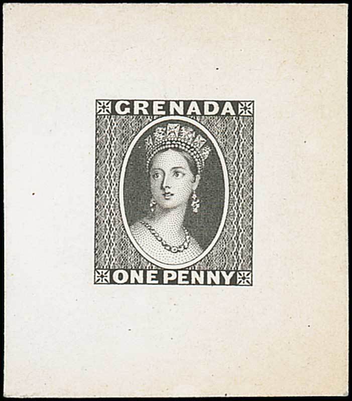 1d. in black on India paper (42x48mm.) affixed to card of the same size; fine and rare. Photo
