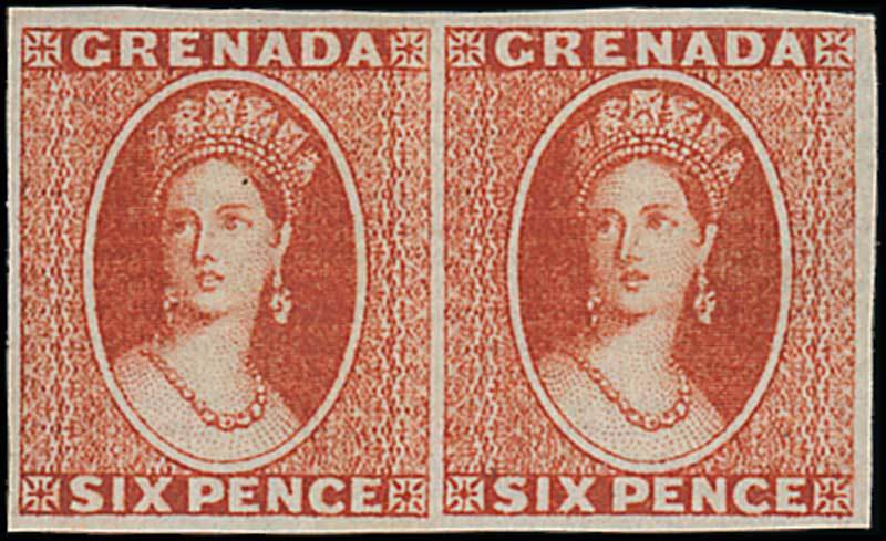 6d. vermilion horizontal pair on horizontally laid paper; fine and scarce. Photo