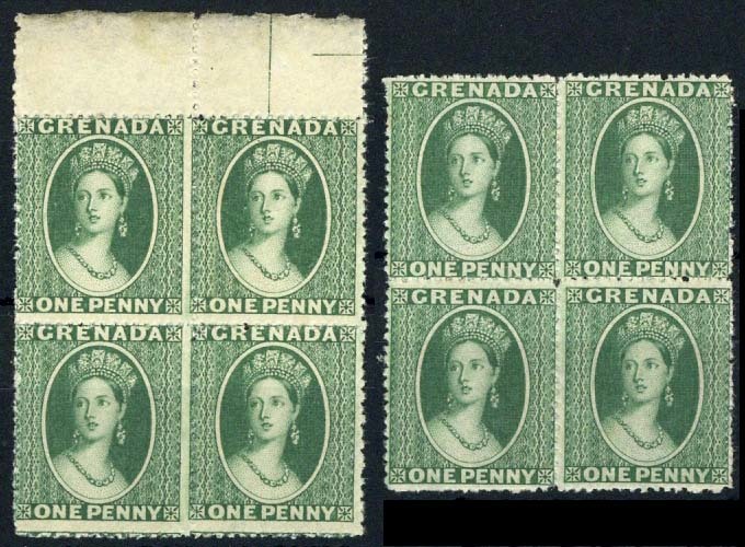 1d. green blocks of four, one marginal from the top of the sheet, large part original gum; fine. S.G. 2, £400