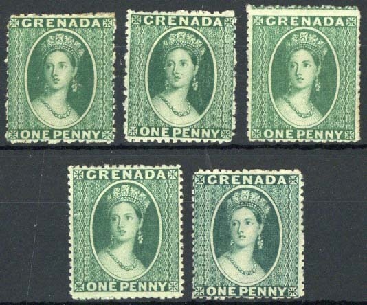 1d. green (2, one with marginal lines watermark), 1d. yellowish green, together with 1873 (Jan.) 1d. green and 1874 (Feb.) 1d. blue-green, all with part to large part original gum. S.G. 4, 5, 10, 11, £590