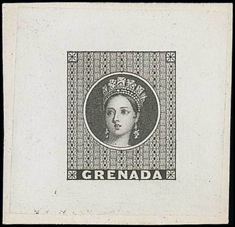 1875 Undenominated, die proof in black on India paper (38x36mm.) affixed to card (40x40mm.); fine and rare. Photo