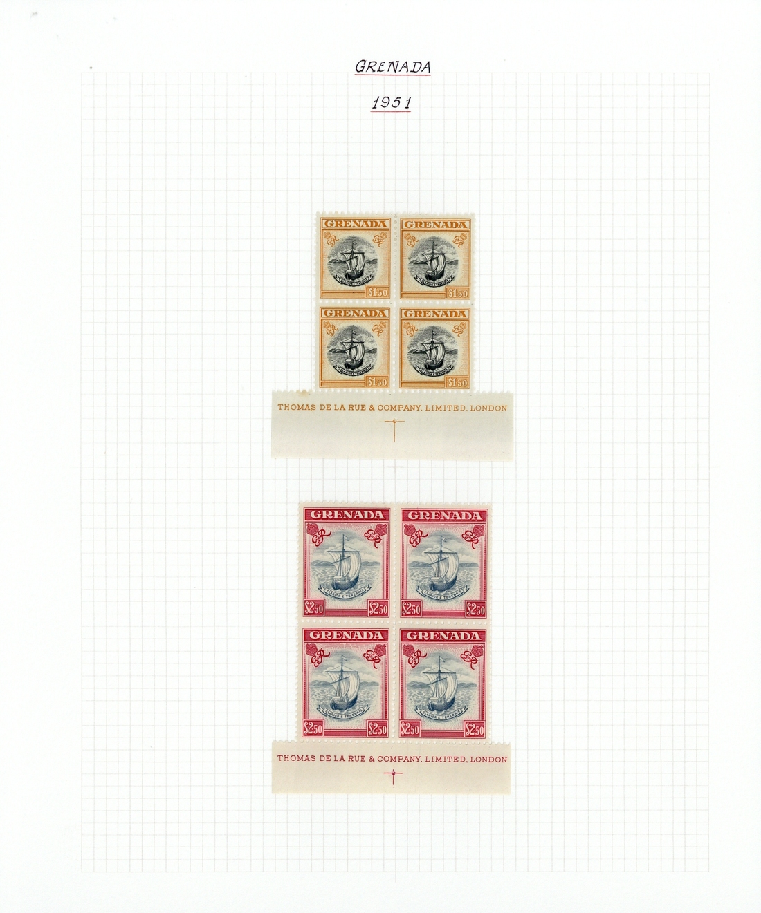1937 Coronation set, 1937-50 ¼d., perf. 12½x13½ ½d. (two shades) and 1½d., perf. 12½ 1d. (2), 2d. (2) and 2½d. to 5/-, 1946 Victory, 1948 Wedding, 1949 U.P.U., 1951 Definitive, 1951 University and New Constitution sets, all in blocks of four, virtually all with imprint or plate numbers; a couple with faults though a generally fine and attractive group. Cat. £650