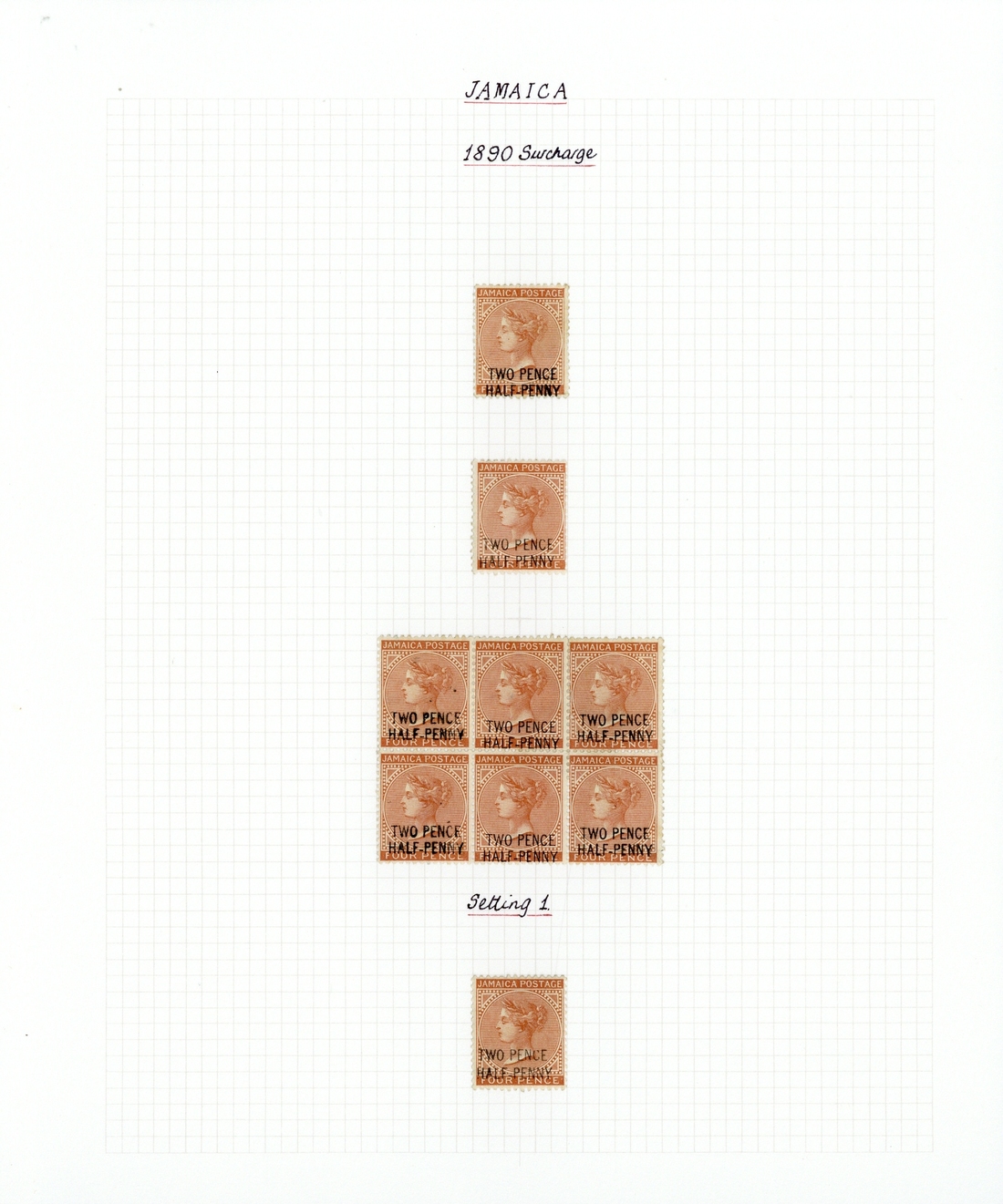 The mint study collection neatly mounted and written-up, with details of the settings, on twelve pages, ninety-five stamps including First Setting (2) with blocks of four (4), six (2) and ten, Second Setting (2, one made from blocks of four and eight) and a few additional varieties, and Third Setting (4, made from a block of twelve); generally good to fine. An attractive lot
