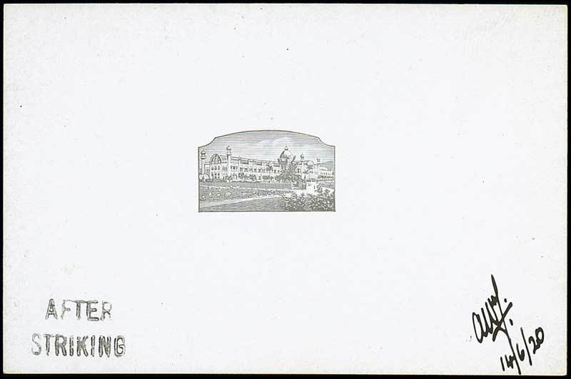 ½d. vignette in black on glazed card (92x60mm.), marked "after striking", initialled and dated "14/6/20". Photo