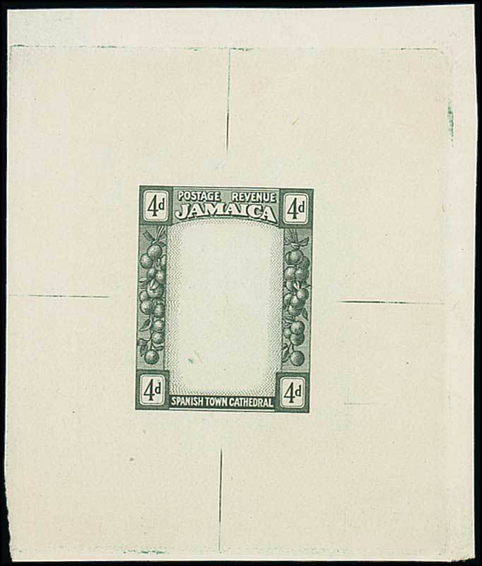 4d. frame in green on wove paper (58x68mm.) showing guide crosses. Photo