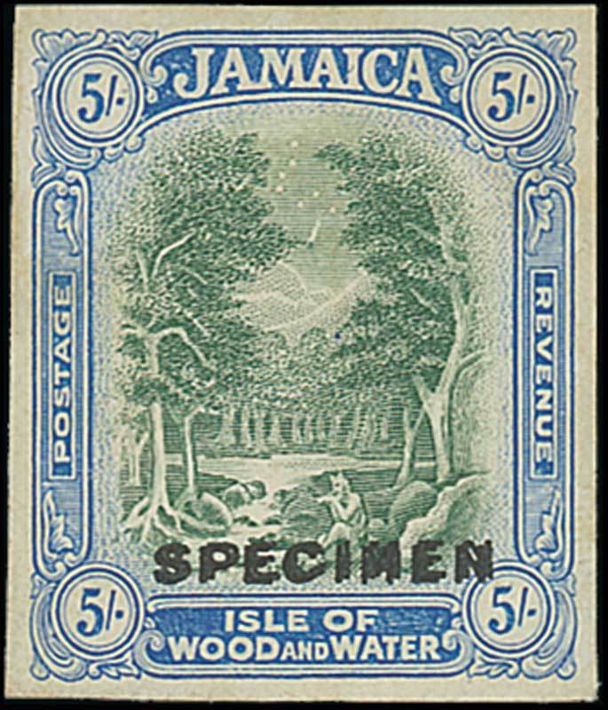 5/- blue-green and ultramarine, overprinted "specimen" (DS2) with overprint double and well separated, ; very fine and believed unique. Photo