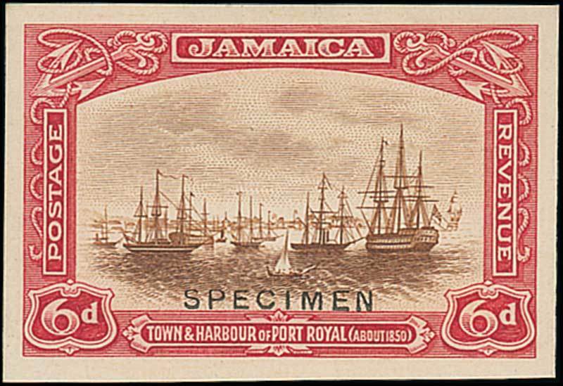 6d. "Port Royal in 1853" in brown and dull carmine, overprinted "specimen" (DS2); fine. Photo