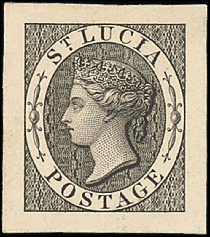 Stamp-size in black showing guide lines removed, struck directly on to card; fine. Photo