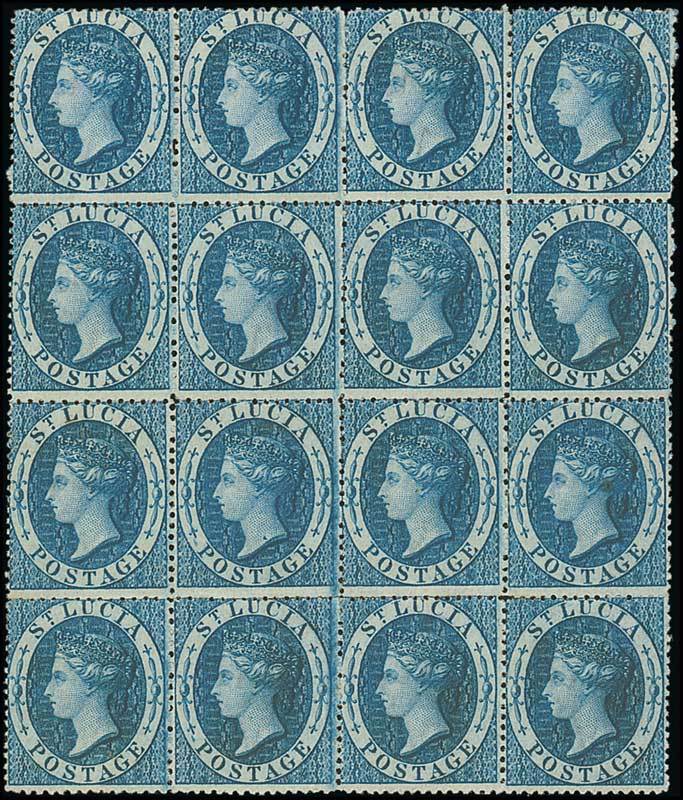 (4d.) blue block of sixteen (4x4) with large part original gum; two horizontal rows with creases and one with a thin spot, nevertheless an attractive multiple. B.P.A. Certificate (2007). S.G. 2, £3,600. Photo