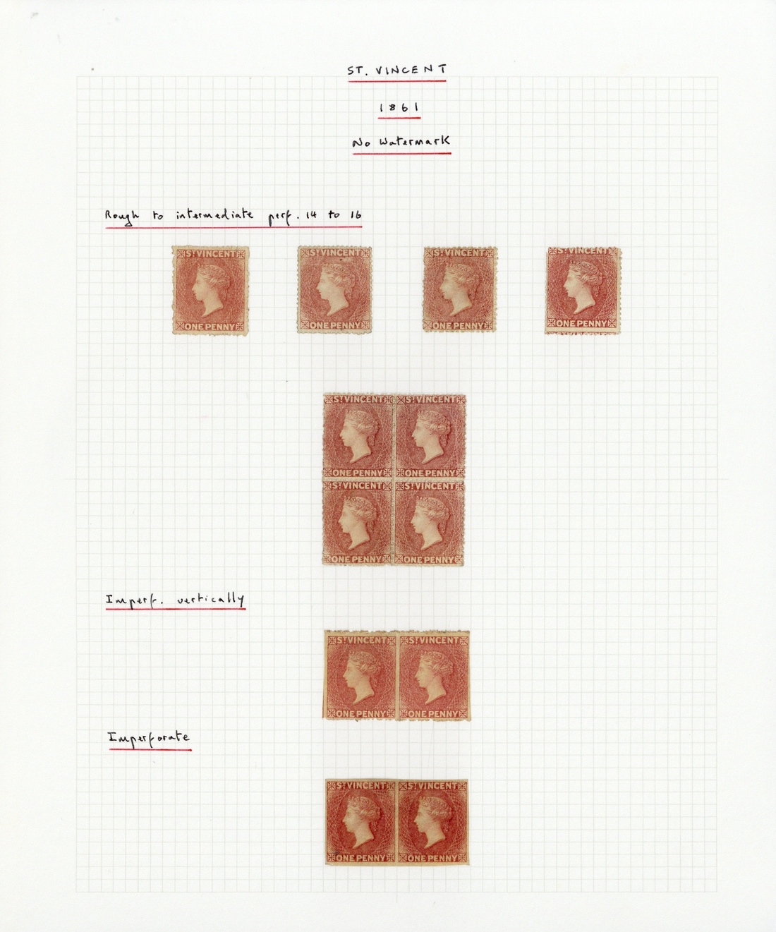 1d. rose-red block of four (ex Jaffé), a pair variety imperforate vertically, an imperforate pair and four singles; unused or with part original gum, generally fine. B.P.A. Certificate (1967) for block. S.G. 1, £1,025