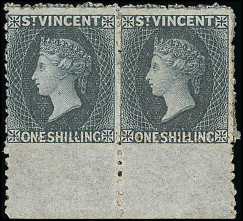 1/- slate-grey horizontal pair with sheet margin at foot, fresh and fine unused with part to large part original gum. A very rare multiple. B.P.A. Certificate (1967). S.G. 8, £5,000. Photo