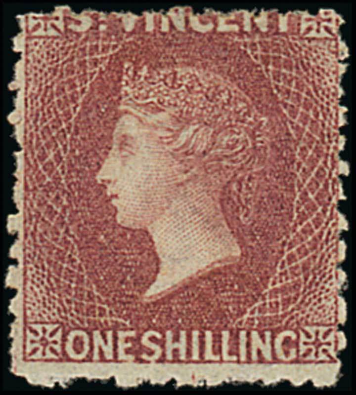 1875 1/- claret, unused with part original gum, a few short perfs, otherwise fine. B.P.A. Certificate (2007). S.G. 21, £600. Photo