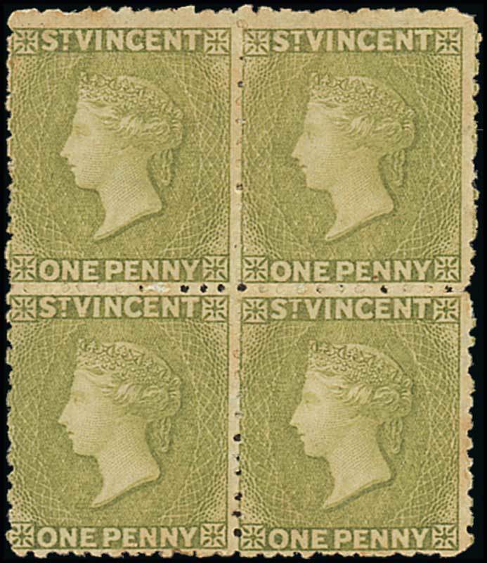 1d. olive-green block of four, unused with part original gum, lovely colour, minor toning on reverse at top, otherwise fresh and fine. Rare, one of three recorded blocks. B.P.A. Certificate (2007). S.G. 29, £720. Photo