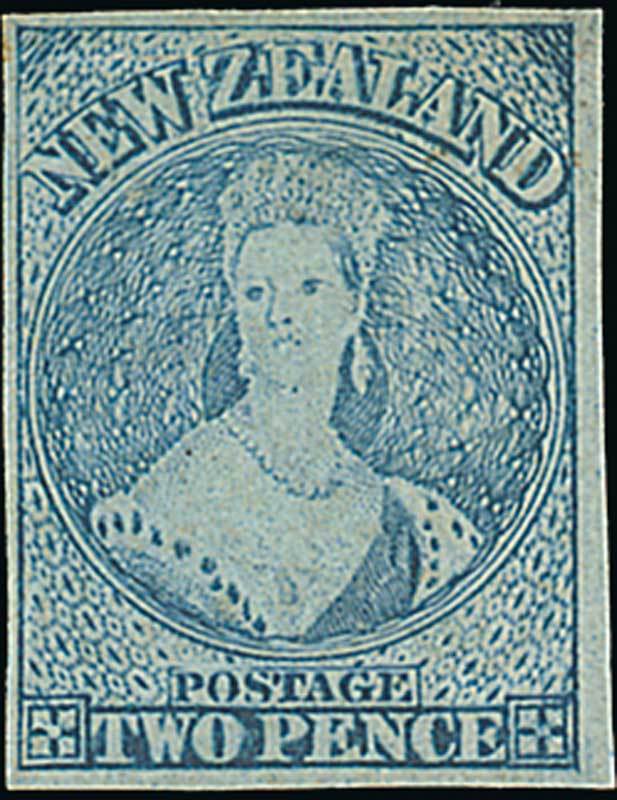 2d. pale blue (Plate I worn) with mainly good to large margins, unused with part original gum, thinned and creased at top though of fine appearance. B.P.A. Certificate (2006). C.P. A2j(1), $5,000; S.G. 98, £1,500. Photo