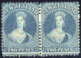 2d. deep blue (Plate II) horizontal pair, unused with large part original gum, fine. C.P. A2n(5), $700; S.G.114, £450