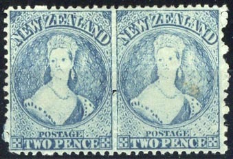 2d. blue (Plate II) horizontal pair, unused with large part original gum, the right stamp with small tone spot otherwise fine. C.P. A2n(7), £700; S.G. 115, £450