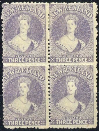 3d. lilac block of four, unused with large part original gum, fine. C.P. A3d(2), $1,200; S.G. 117, £640