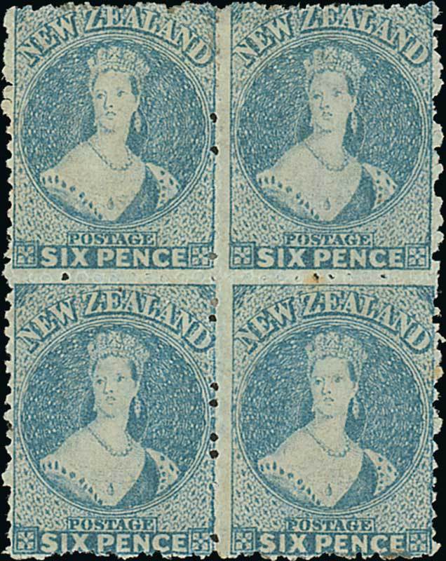 6d. pale blue block of four, unused with large part original gum, a few minor tones otherwise fine. Odenweller Certificate (2006). C.P. A5k(3), $1,800; S.G. 136, £900. Photo