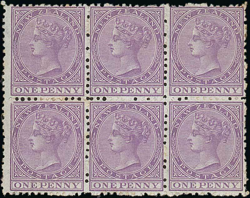 1d. lilac, a block of six (3x2) unused with large part or full original gum (lower row), fresh and fine. C.P. C1a, $2,325; S.G. 152, £720+. Photo
