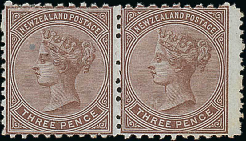 3d. brown horizontal pair, fresh and fine unmounted mint. C.P. C3b, $1,900; S.G. 161, £400. Photo