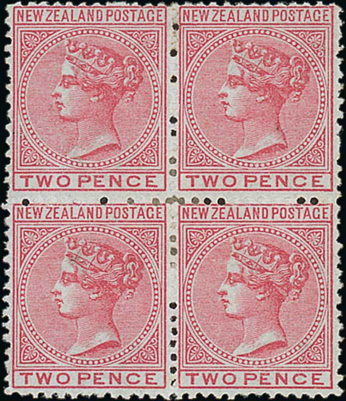 2d. rose block of four, unused with large part original gum, good colour, fresh and fine mint. C.P. C2a(Y), $2,300; S.G. 167, £900. Photo