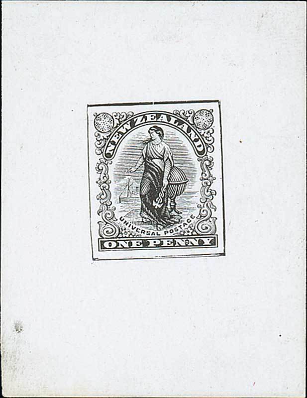1908 (Dec.) Perkins Bacon surface printed relief die proof of the 1d. in black with uncleared frame on thin glazed card, fine. Photo