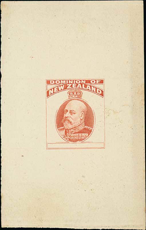 Progressive die proof showing portrait and top label only, in orange on surfaced wove paper (45x71mm.), fine. Photo