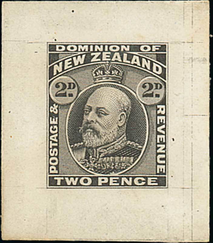 2d. in black showing guide lines outside design, on thin card (31x36mm.), fine. Photo
