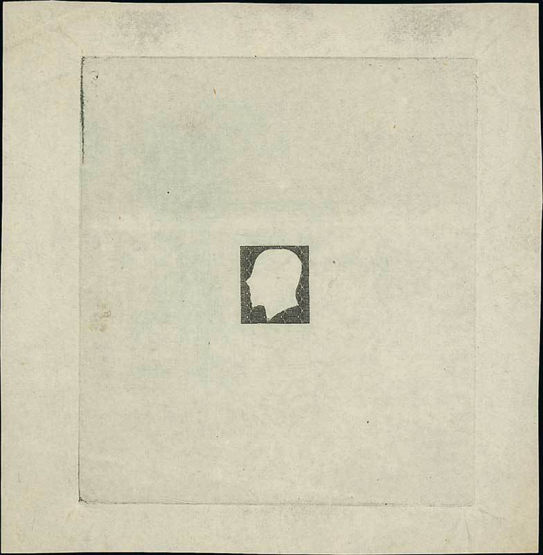 Perkins Bacon 3d. proof of the engine-turning used to surround the King's head, in black on thin wove paper (102x104mm.) with a full plate surround, fine. Photo