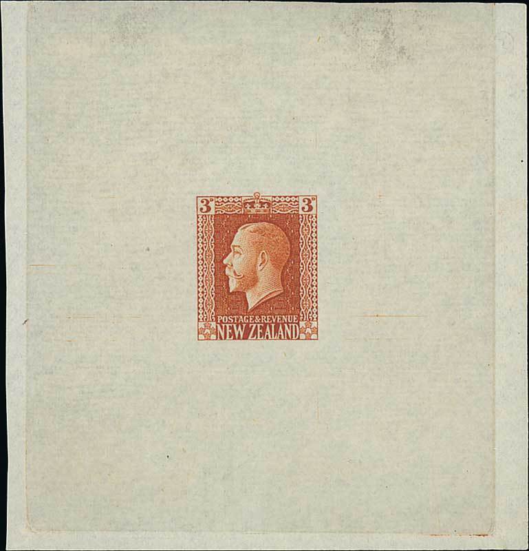 Perkins Bacon 3d. proof in deep chestnut on wove paper (78x82mm.) to test the depth of the engraving, fine. Photo