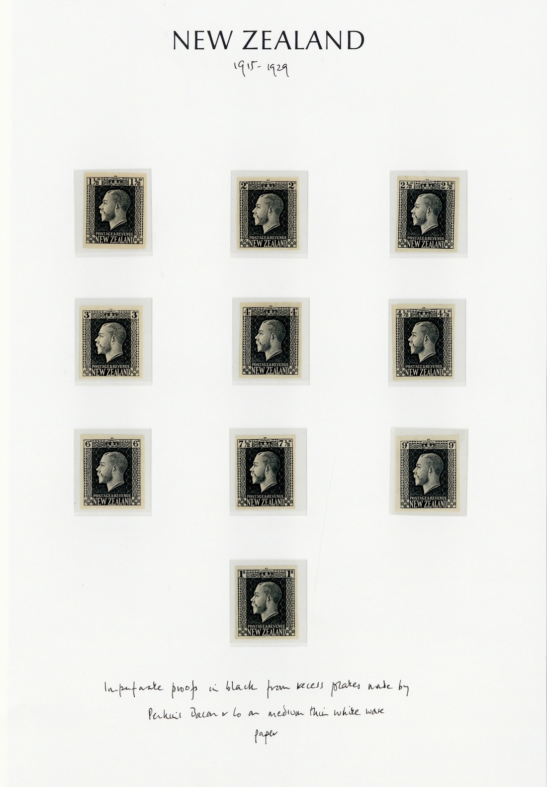 1½d., 2d., 2½d., 3d., 4d., 4½d., 6d., 7½d., 8d., 9d. and 1/-, all in black on unwatermarked wove paper, and 5d. and 8d. in black on Cowan unsurfaced watermarked paper, fine