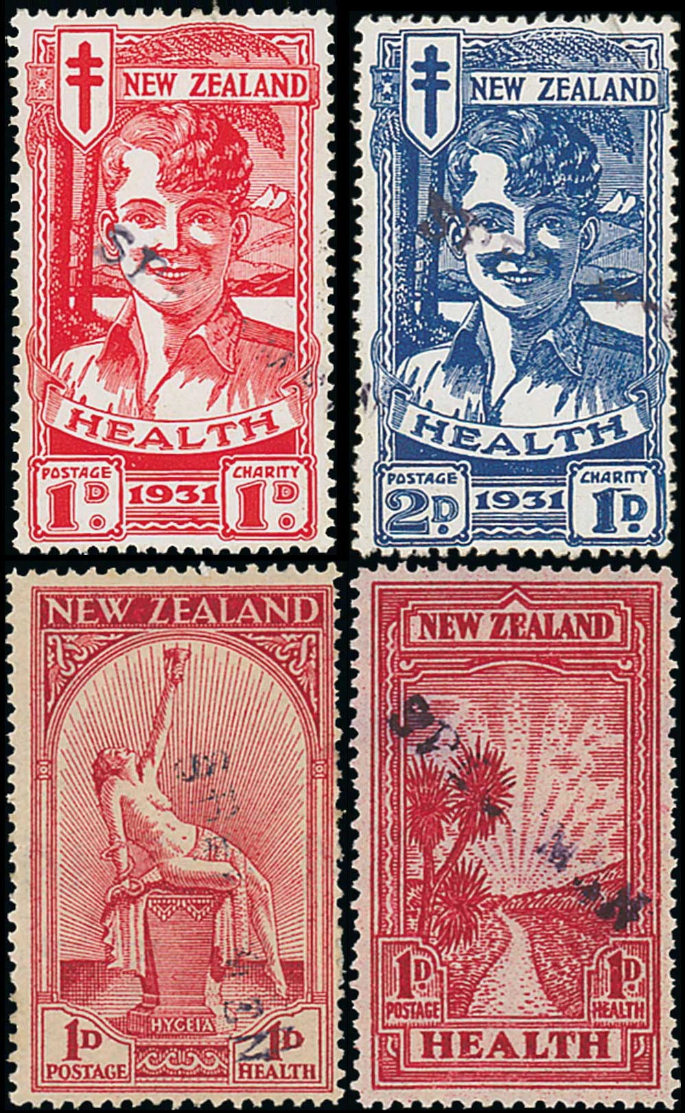 1929-36 Health issues complete, each handstamped "specimen" in violet ex a G.B. postal archive, all without gum, the 1935 1d.+1d. affixed to small piece, fine. Rare. Photo