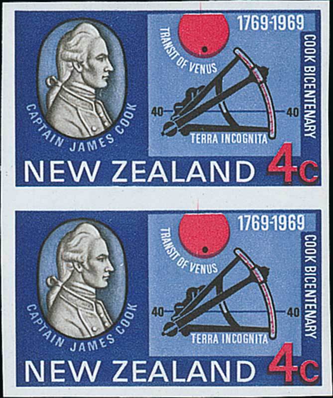 1969 (Oct.) Bicentenary of Cook's Landing, 4c. vertical pair, variety imperforate, fine unmounted mint. C.P. S122a(Y), $975; S.G. 906a, £425. Photo