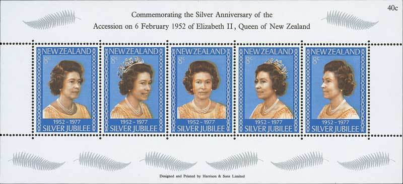 1977 (Feb.) Silver Jubilee sheet with Indian red omitted, fine unmounted mint. Rare. C.P. SM220-224(X), $1,000; S.G. MS1137c, £650. Photo