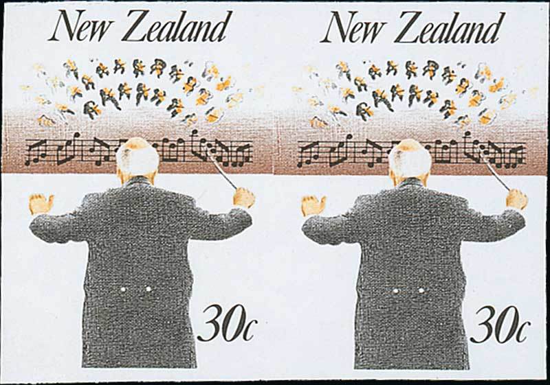 1986 (Nov.) Music in New Zealand, 30c. imperforate horizontal pair, fine unmounted mint. C.P. S341a(Z), $650; S.G. 1407a, £275. Photo