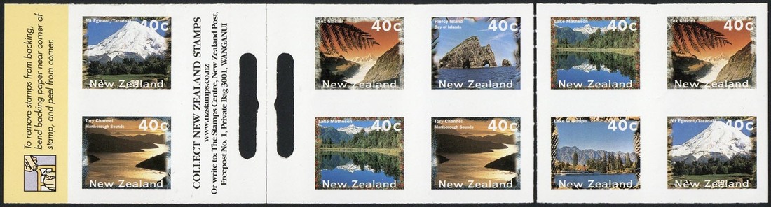 1998 (Jan.) "Scenic Definitives" $4 self-adhesive booklet containing 40c. pane of ten, variety imperforate, the end block of four detached otherwise fine. Rare. C.P. W66a(Y), unpriced