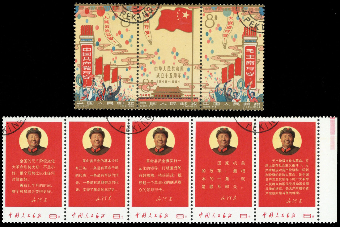 1964 15th. Anniversary of the Republic strip of three, 1968 Directives 8f. strip of five, fine used. S.G. 2213a, 2397a, £2,030