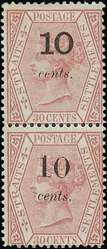 A vertical pair, types "b" over "a", unused with large part original gum; the lower stamp with pulled perf at foot otherwise fine. B.P.A. Certificate (1996). S.G. 23/22, £1150+. Photo