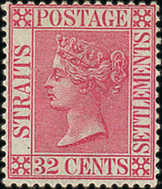 1892-94 3c. on 32c. carmine-rose, variety surcharge omitted, unused with large part original gum, fine. Rare. Holcombe Certificate (1991). S.G. 94a, £4500. Photo