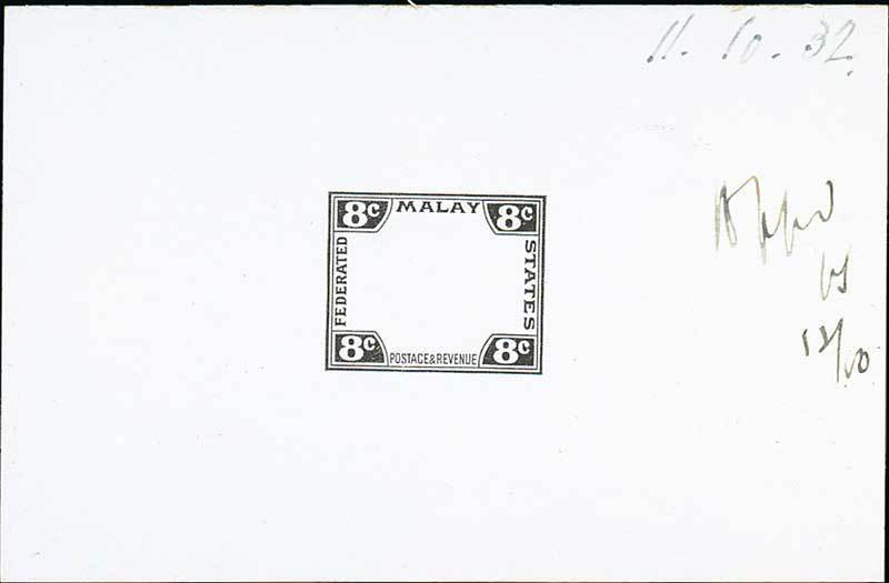 1922-24 8c. die proof of the frame in black on glazed card (92x60mm.), marked "Appd", initialled and dated "11.10.32", fine. Photo