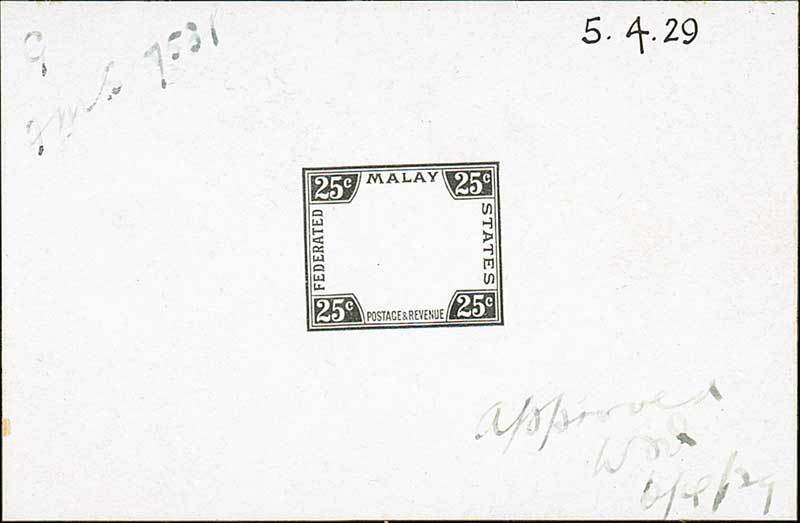 1922-24 25c. die proof of the frame in black on glazed card (92x60mm.), marked "G, FMS 7531" and "Appd", initialled and dated "5.4.29", fine. Photo