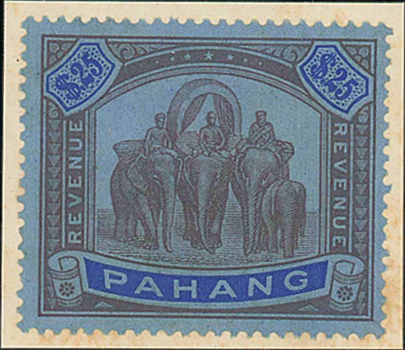 1936 $25 purple and blue on blue, unused and affixed to small piece, fine. Barefoot 4. Photo