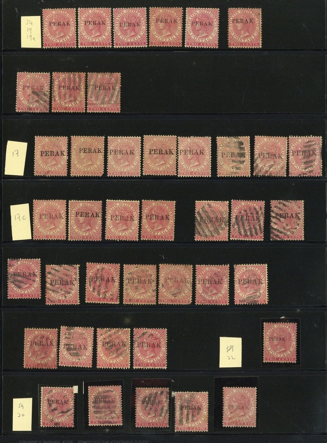 1881-1900 mainly mint range including 1881 CC 2c. with Type 5 (2), 1882-83 CA 2c. with Type 11, 1884-91 2c. with Types 14 (26, seventeen used), 16 (9, three used), 17 (5, all used, one cancelled in red) and 19, 1887-89 1c. on 2c. with Types 32 (4, two used) and 33, 1891 with bar through value 1c. on 2c. Types 30 (5, two used), 41 (2), 24 (used) and 37, and 1900 3c. on $1 and 3c. on $2; condition a little mixed. Cat. £600+