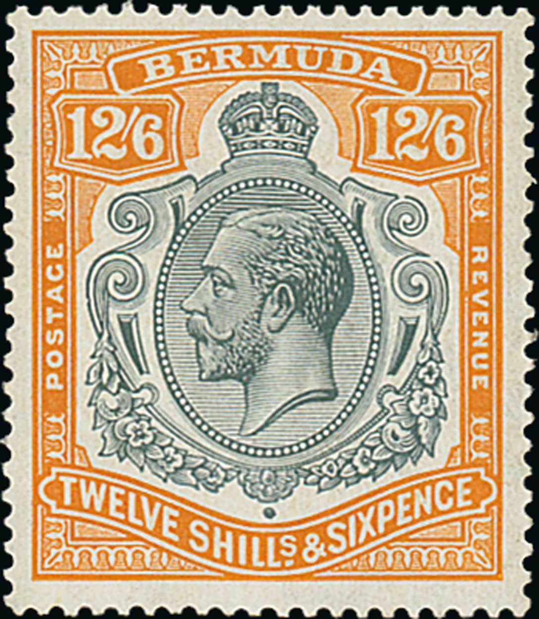 12/6d. grey and orange, variety break in scrolls at right, large part original gum, fresh and fine. B.P.A. Certificate (2007). S.G. 93h, £900. Photo