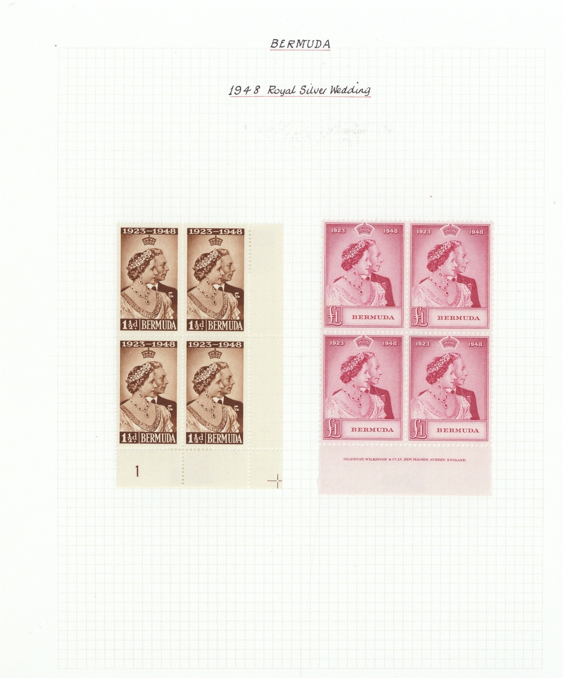 1936-49 mint range including 1936-47 in imprint strips or blocks of four, 1938-52 1d. to 1/- with shades plus a number of additional values to 1/- in imprint blocks of four, 1948 Wedding £1 imprint block of four and 1949 UPU set in imprint/plate number blocks of four; fine. Cat. £1,120+