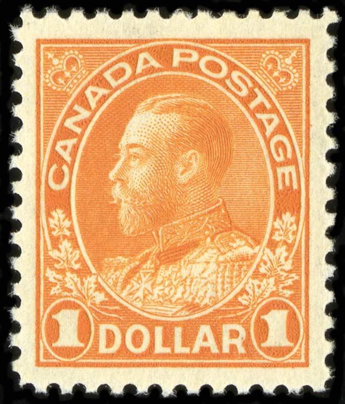 #122, 1923 $1.00 Orange, dry printing, intense vibrant color and impression, exceptionally well centered and margined, o.g., n.h., extremely fine (Unitrade C$450.00).