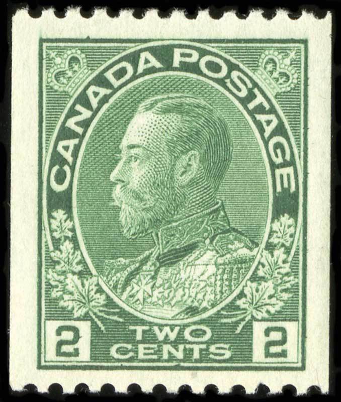 #131-34, 1915-24 1c-3c "Admiral," perf. 12 horizontal coils, wet printings, attractive mint set of singles of these scarce and difficult coils, each is exceptionally well centered within large margins, brilliantly fresh and intense colors, o.g., n.h., extremely fine; difficult to find this well matched (Unitrade C$525.00).