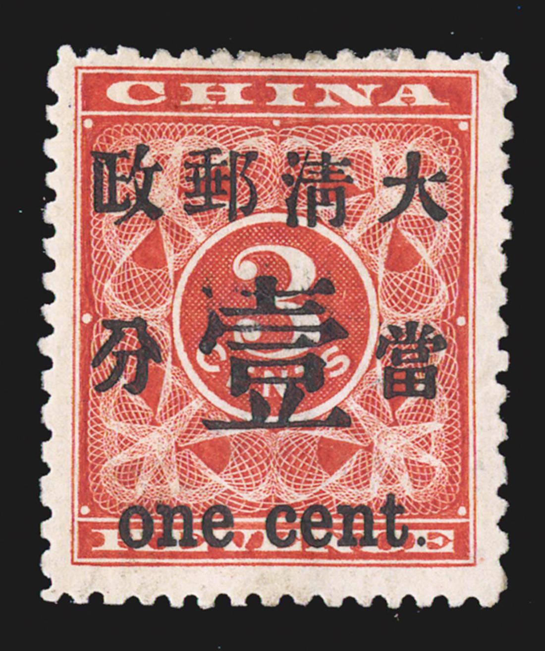 #78, 1897 "One Cent" surcharge on 3c Red revenue, disturbed o.g. from hinge removal, fresh and fine.
