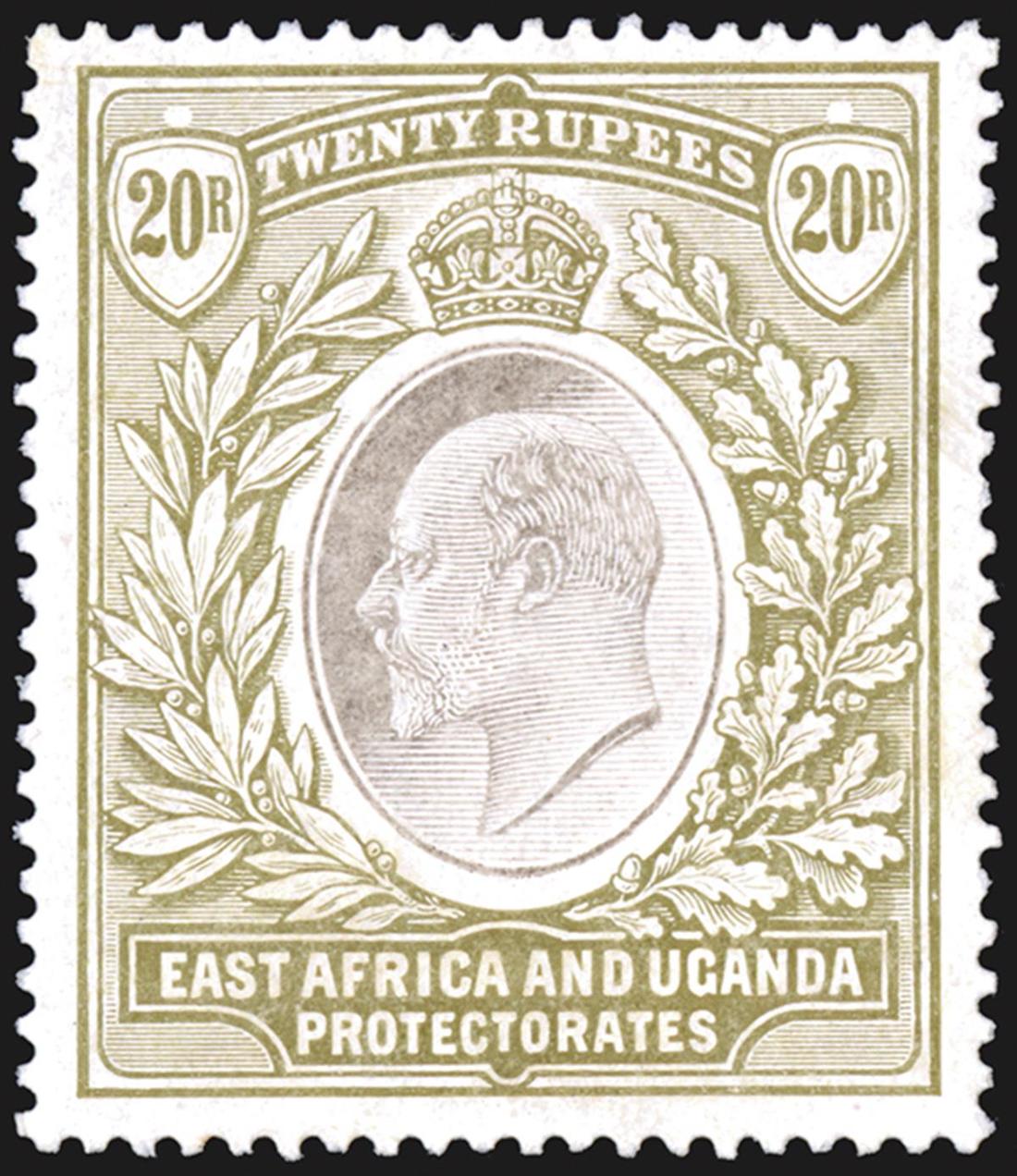 #30, 1904 20R Olive gray and black, wonderfully fresh mint single, vivid rich colors, o.g., very lightly hinged, very fine (S.G. #32; £800).