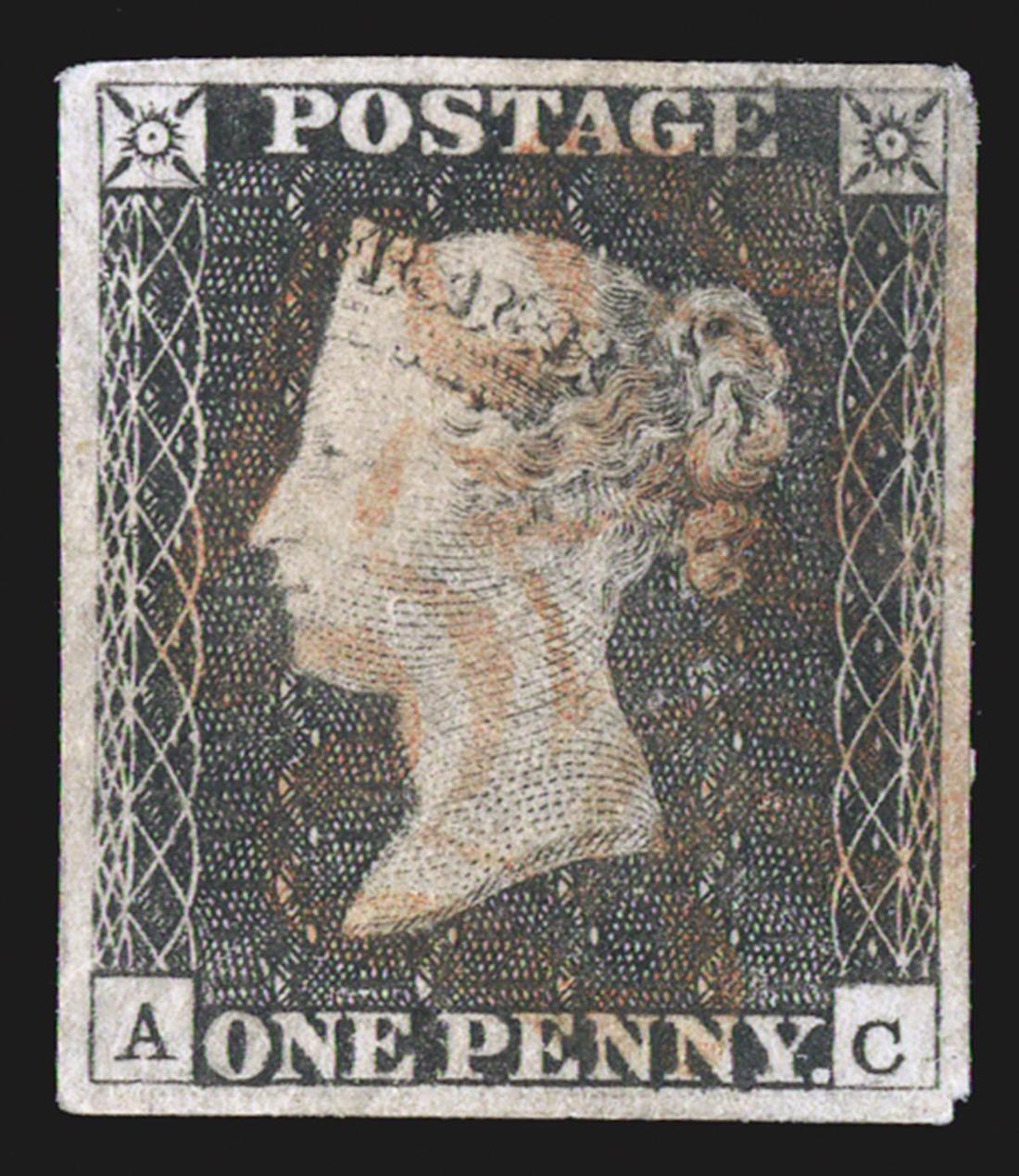 #1, 1840 1d Black, Plate 2, large even margins, light red Maltese cross cancel, very fine (S.G. #2; £375).